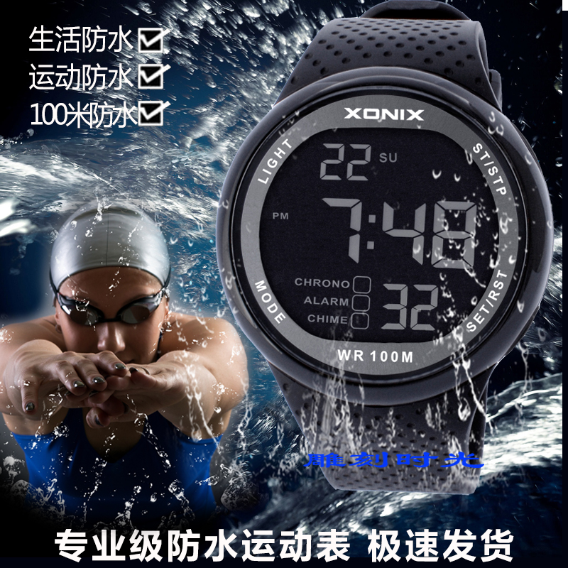 XONIX精准男士商务多功能LED学生计时闹钟报时防水游泳电子手表GJ热门设计联盟服务商