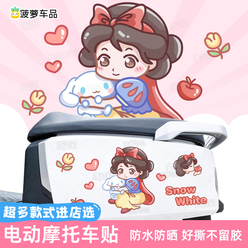 迪士尼白雪公主卡通动漫电动摩托车贴纸小牛小龟王可爱趣味电瓶车热门设计联盟服务商