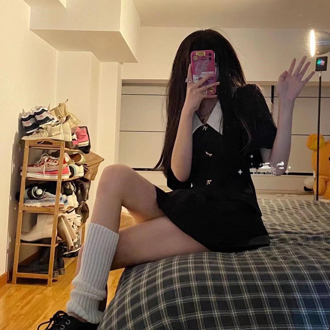 黑色连衣女2021款设计感收腰短袖法式小黑今年热门设计联盟服务商