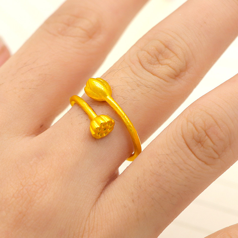 喜仕莱越南沙金两世欢莲蓬戒指女镀金色小众设计时尚个性活口首饰热门设计联盟服务商