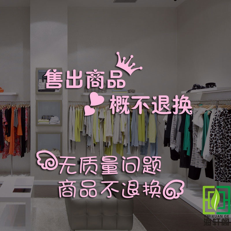 售出商品概不退换创意提示贴纸服装店商铺超市墙面玻璃提示标语。热门设计联盟服务商