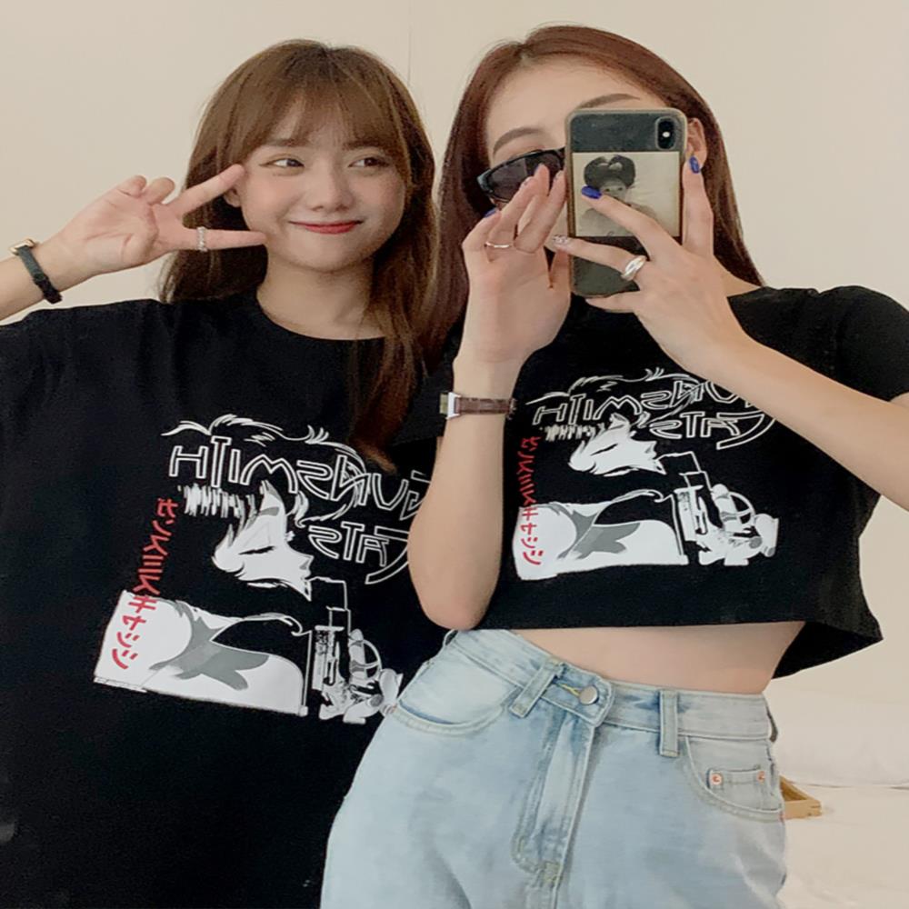 t漫画卷毛情侣装情侣日系ins个新款短袖恤宽松女夏东日长短上衣款热门设计联盟服务商