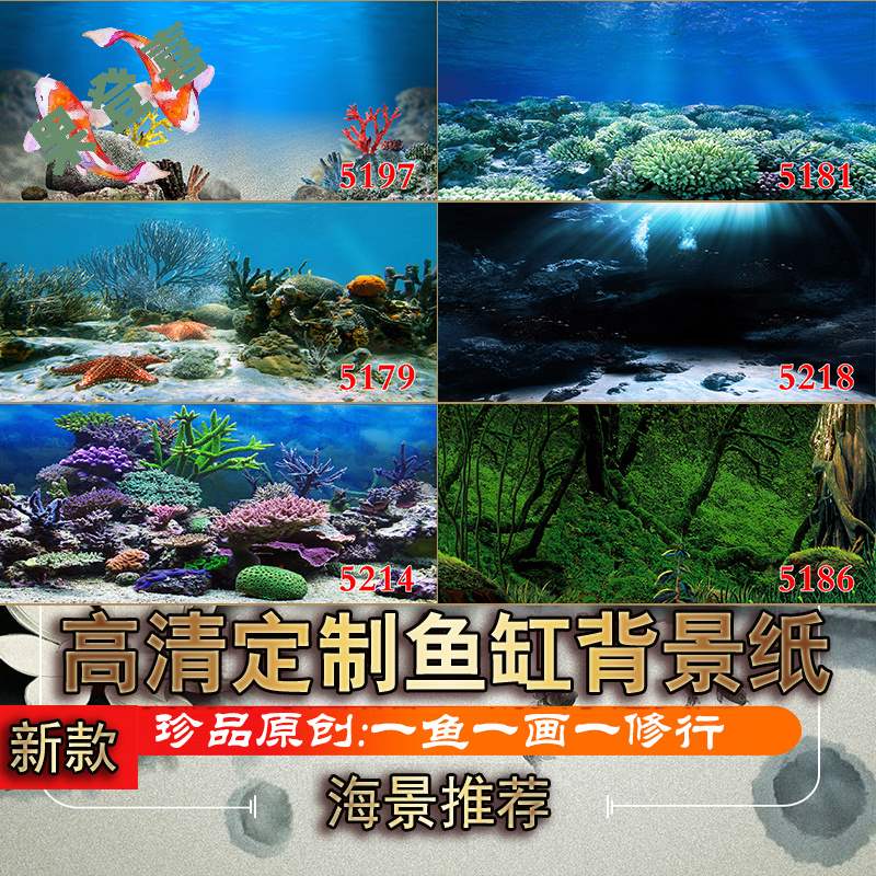 造景立体装饰鱼缸背景纸画高清图3d水族箱贴纸龙鱼缸底海景图。热门设计联盟服务商