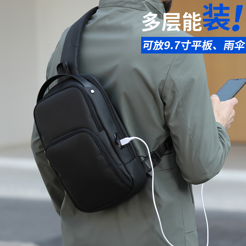 胸包男大容量超大休闲多功能大号商务男士单肩斜挎包胸前包小背包热门设计联盟服务商
