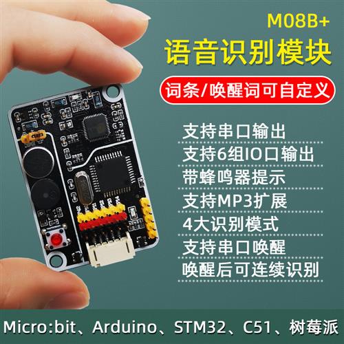 M08B+升级版语音识别模块 语音A交互 语音控制 声音传感器 AI启蒙热门设计联盟服务商