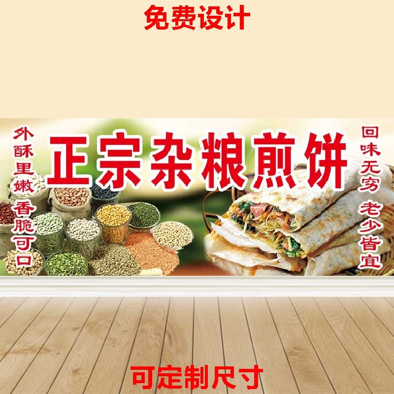 小吃车店山东五谷杂粮煎饼海报广告贴纸贴画小吃车海报贴画热门设计联盟服务商