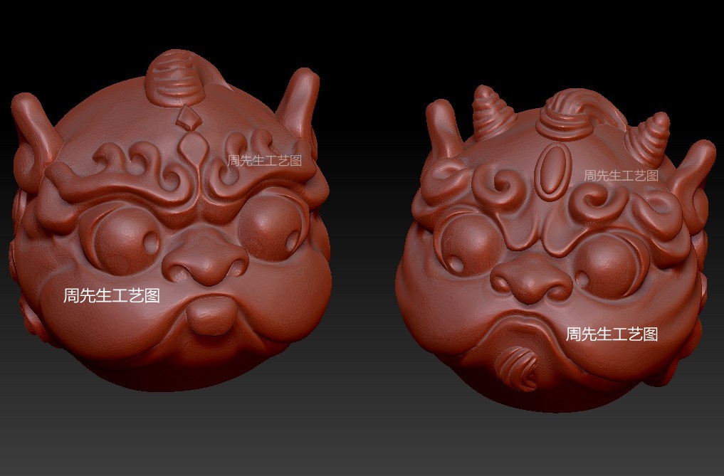 三维白泽谛听九图龙接可爱圆雕配饰子模型q408珠子3d立体stl扫描热门设计联盟服务商