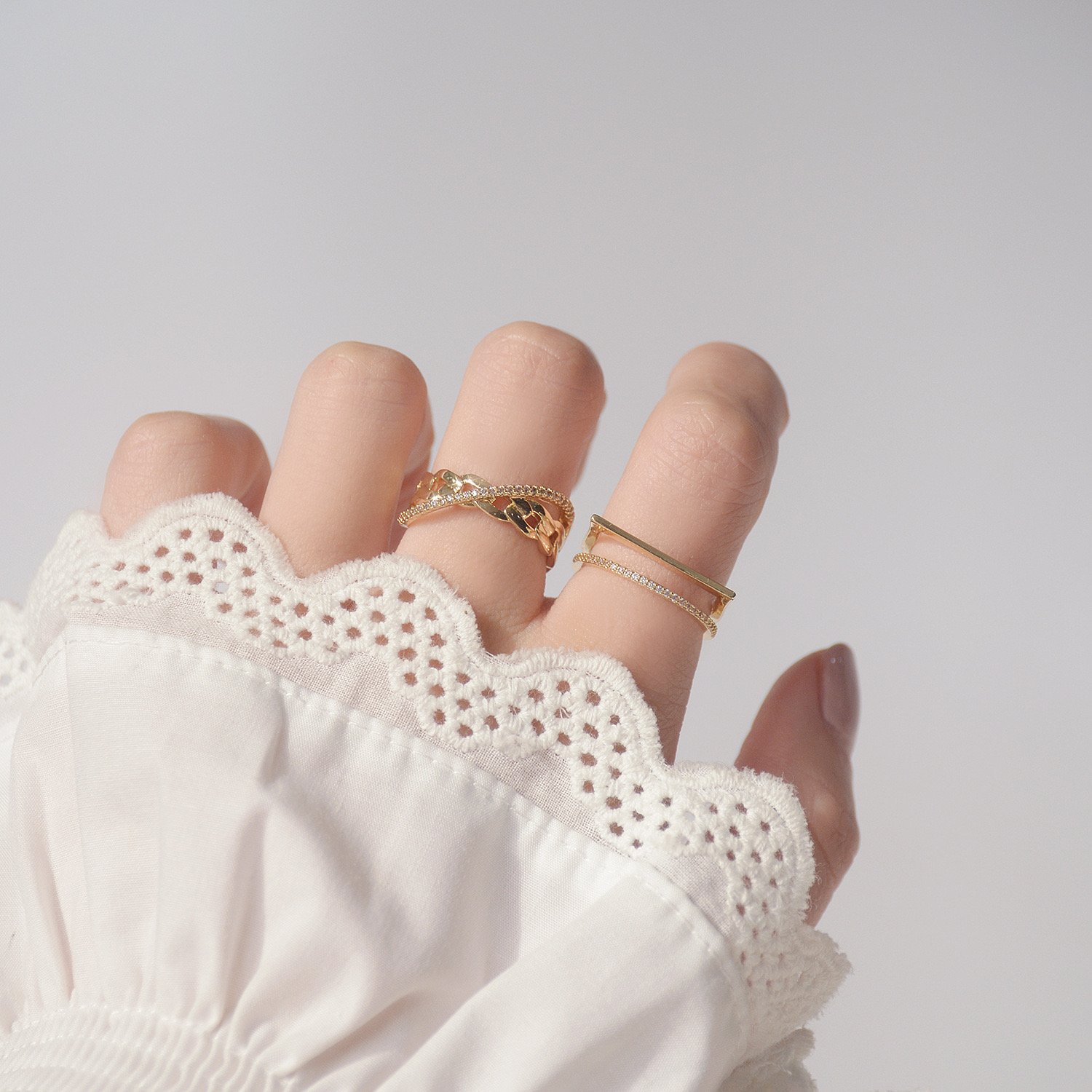 韩国小众设计感微镶锆石戒指女14K冷淡风双层开口戒日常百搭指环热门设计联盟服务商