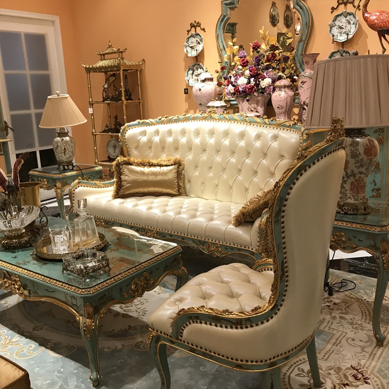 凤凰美居法式宫廷实木真皮休闲沙发法国设计出口别墅奢华主人椅热门设计联盟服务商