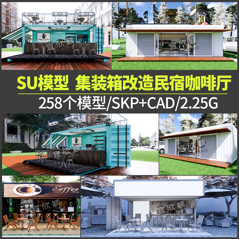 集装箱改造建筑su模型loft工业风民宿咖啡厅书吧奶茶店别墅cad热门设计联盟服务商