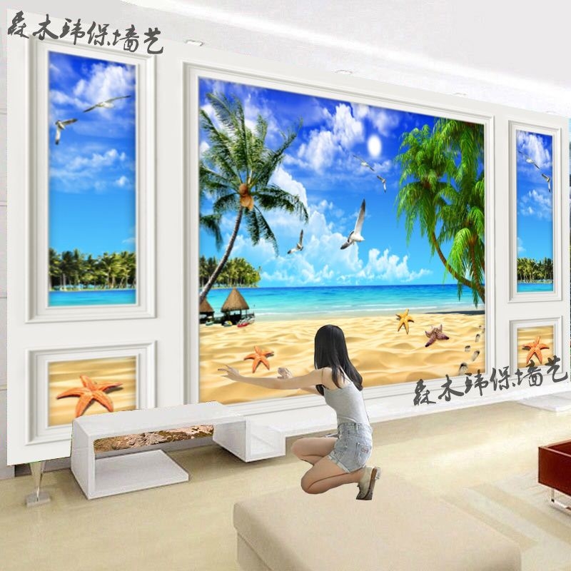 3d海景风景山水画电视墙背景墙壁纸壁画5d墙布客厅沙发装饰影视墙热门设计联盟服务商