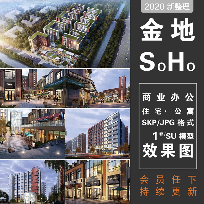 2020金地SOHO办公楼su模型效果图商业街酒店公寓建筑设计方案素材热门设计联盟服务商