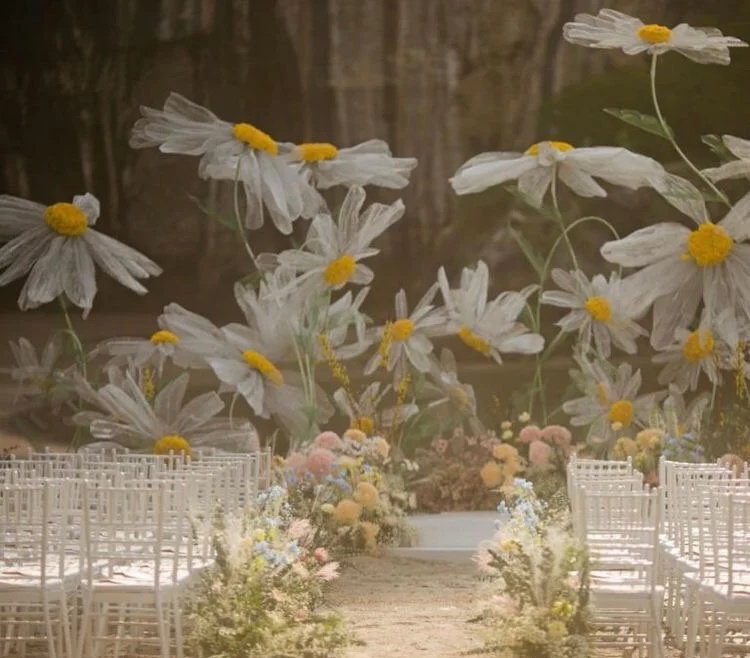 大型婚礼真丝网纱花店铺橱窗装饰布置婚纱拍摄影立体雏菊商场美。热门设计联盟服务商