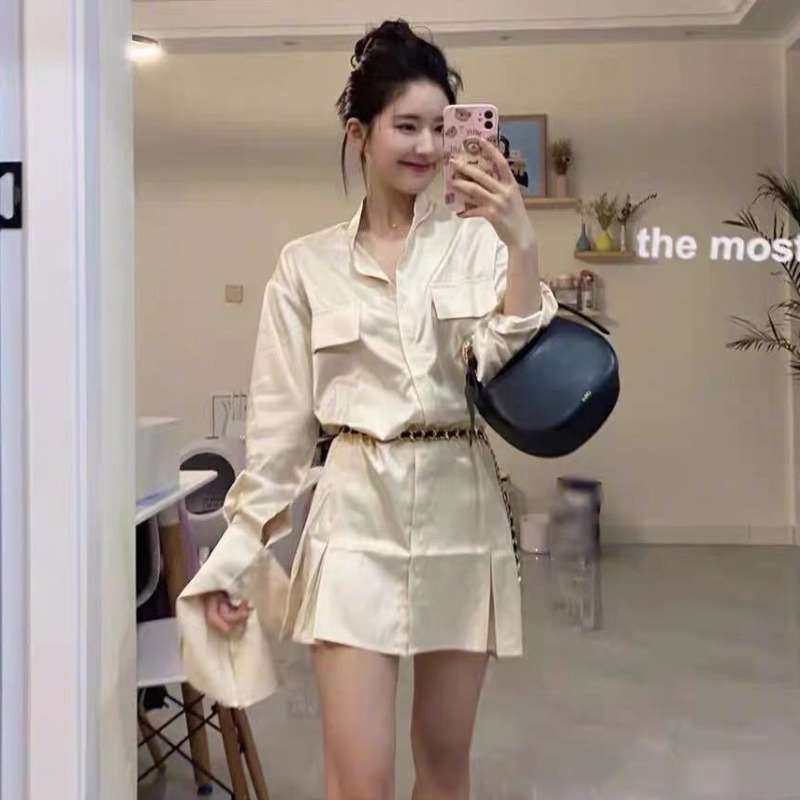 赵露思赫本风连衣l裙女法式香槟色设计感衬衫短裙2021夏季新款热门设计联盟服务商