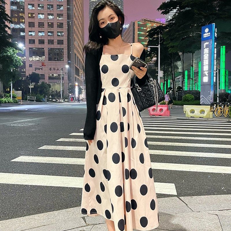 法式抹胸大波点吊带连衣裙女夏装2021年新款小众气质设计感茶歇裙热门设计联盟服务商