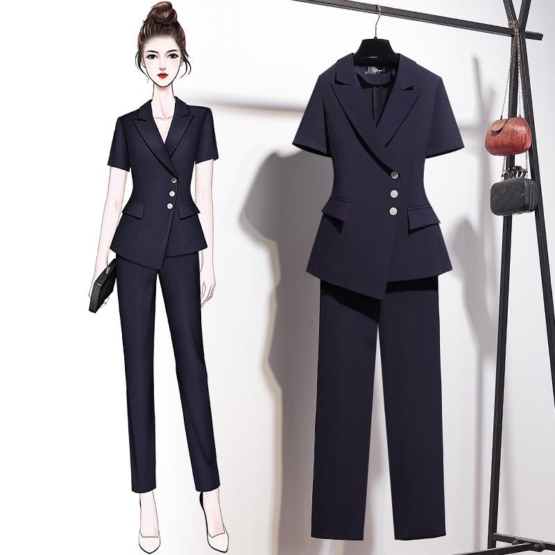 西装套装女夏薄款小西服外套教师售楼部工作服职业气质主持人正装热门设计联盟服务商