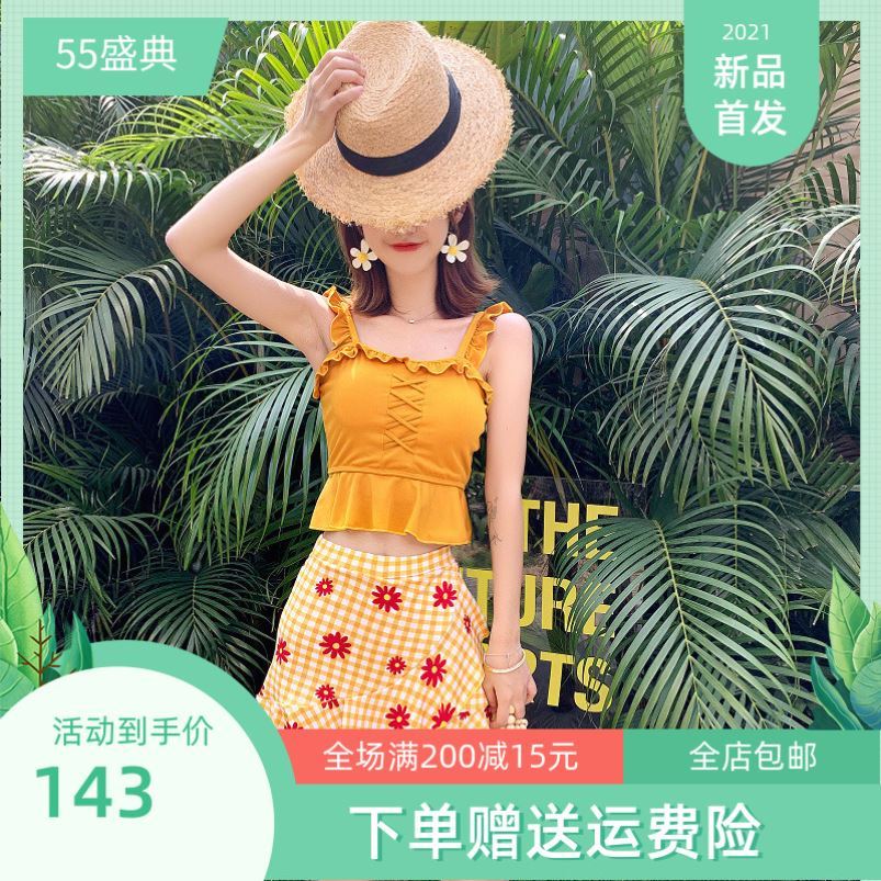 温泉泳衣女分体裙式平角两件套2021新款学生保守小胸遮肚显瘦泳装热门设计联盟服务商