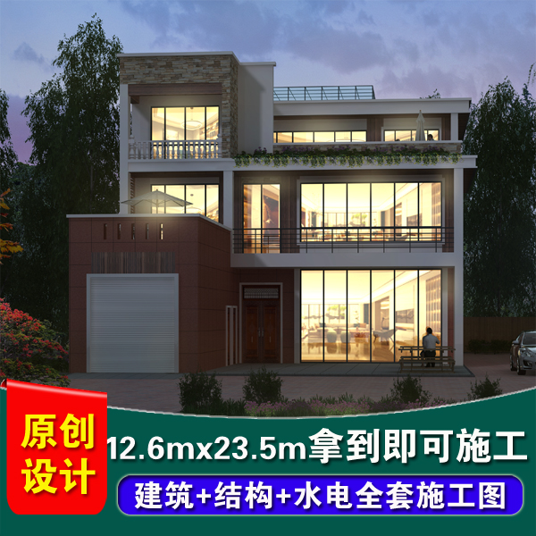 三层现代风格简约别墅二层半复式设计旋转楼梯自建房平楼房施工图热门设计联盟服务商