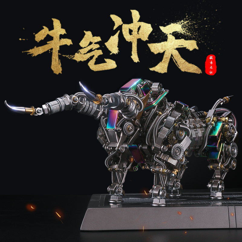 机械党创意牛摆件牛气冲天金属拼装模型3d立体拼图高难度玩具礼物热门设计联盟服务商