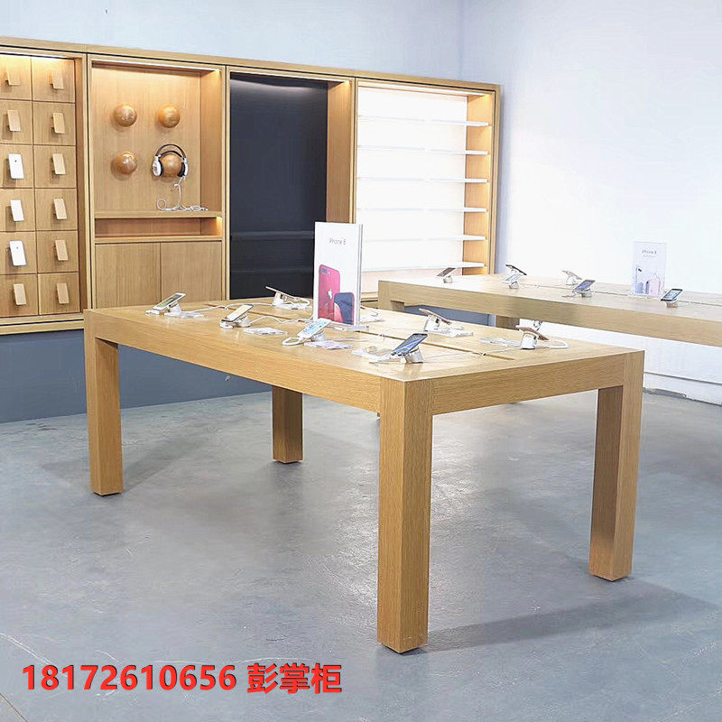 新款苹果木纹体验台中岛展示桌手机配件货架电脑展台数码展柜台席热门设计联盟服务商