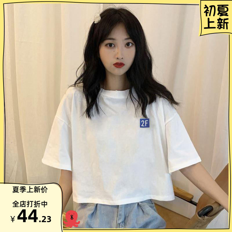 短款短袖t恤女ins潮2021新款宽松韩版心机设计感小众高腰露脐上衣热门设计联盟服务商