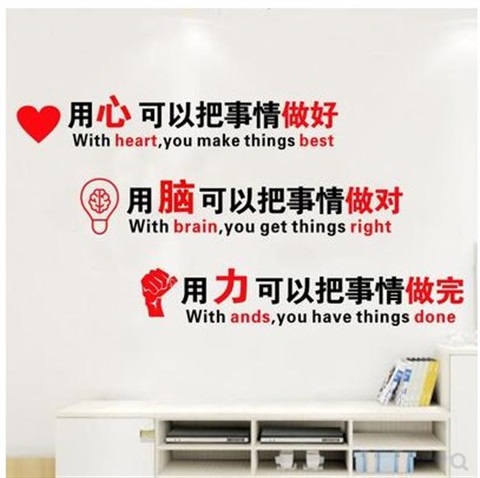 贴纸贴纸背景墙用心用力用脑公司文化励志墙企业文化墙办公室画热门设计联盟服务商
