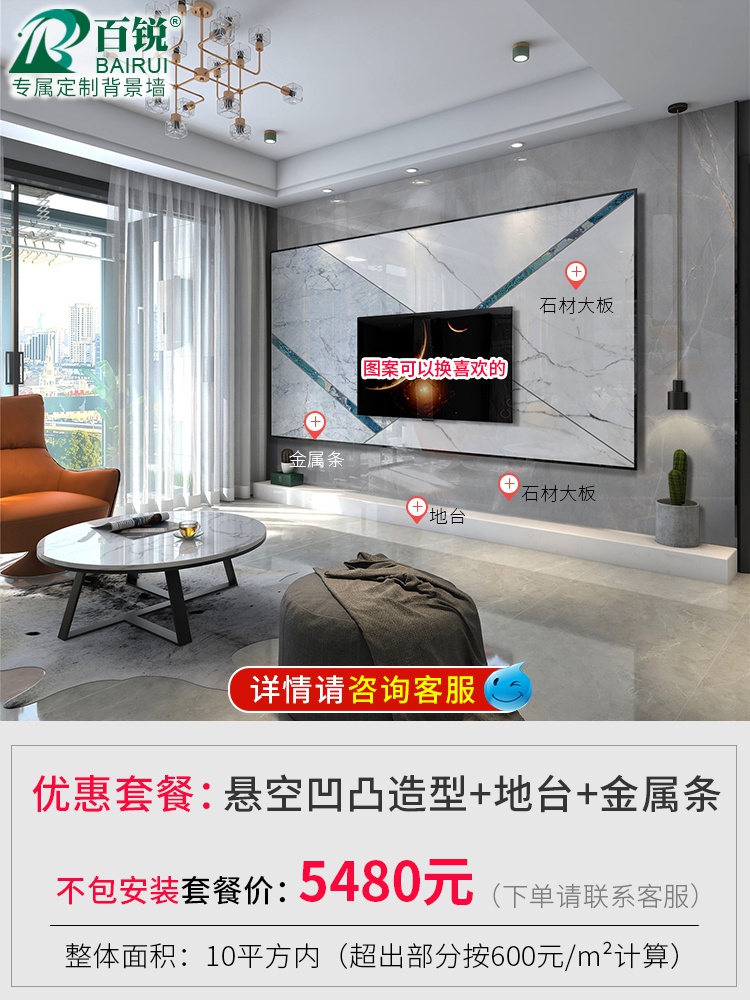 悬空大理石电视背景墙客厅岩板瓷砖轻奢悬浮造型现代简约影视墙热门设计联盟服务商