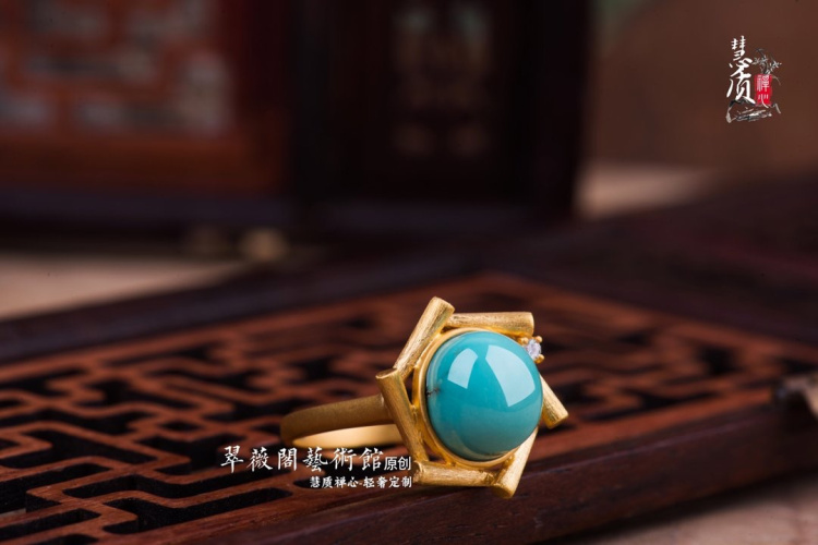 翠薇慧质湖北玉化级别绿松石戒指精心设计质地瓷实高瓷高蓝热门设计联盟服务商