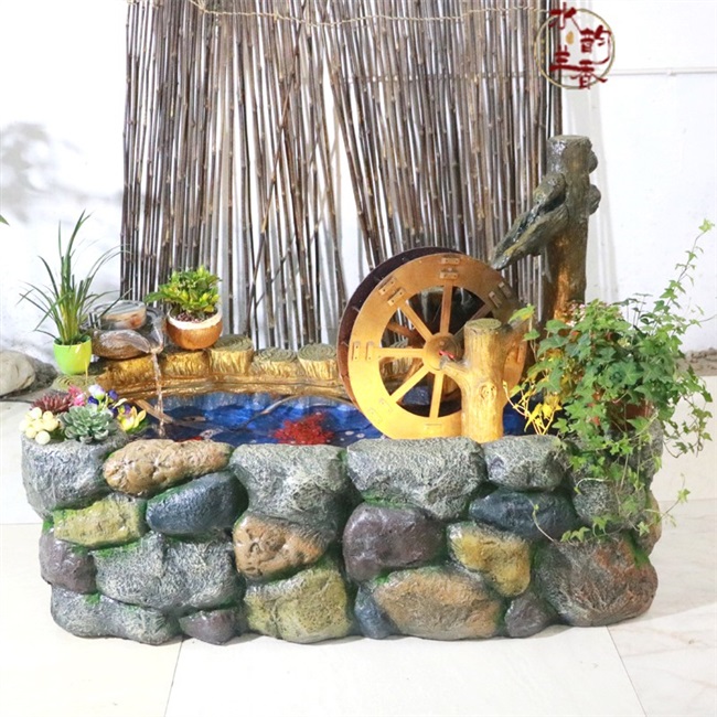 新假山喷泉流水景观养鱼池鱼缸养龟缸户外阳台庭院花园装饰造景摆热门设计联盟服务商