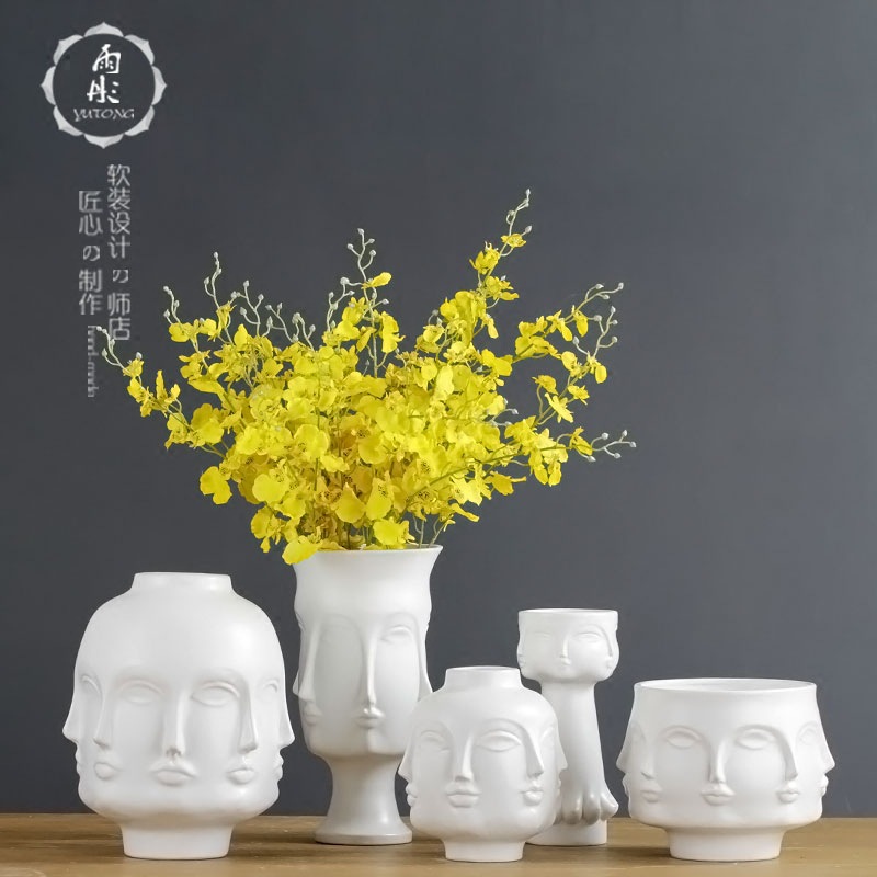 轻奢陶瓷花瓶人脸摆件样板房家居客厅插花摆设设计师软装饰品创意热门设计联盟服务商