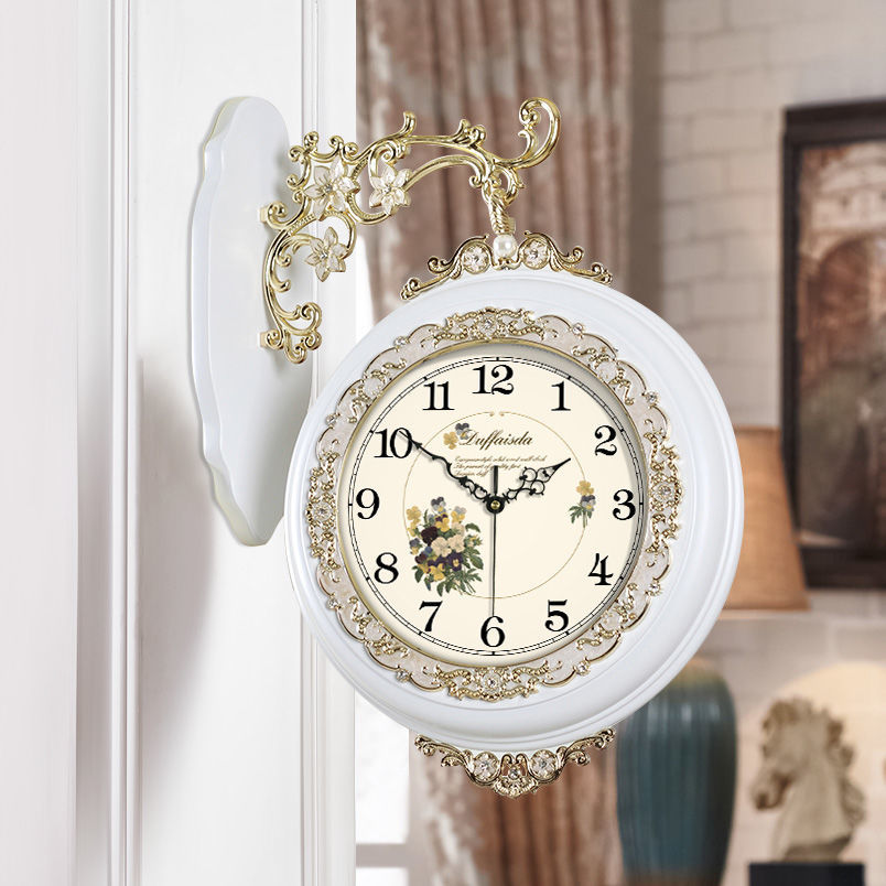 北欧双面挂钟客厅创意艺术两面装饰实木现代轻奢壁钟表静音大挂表热门设计联盟服务商