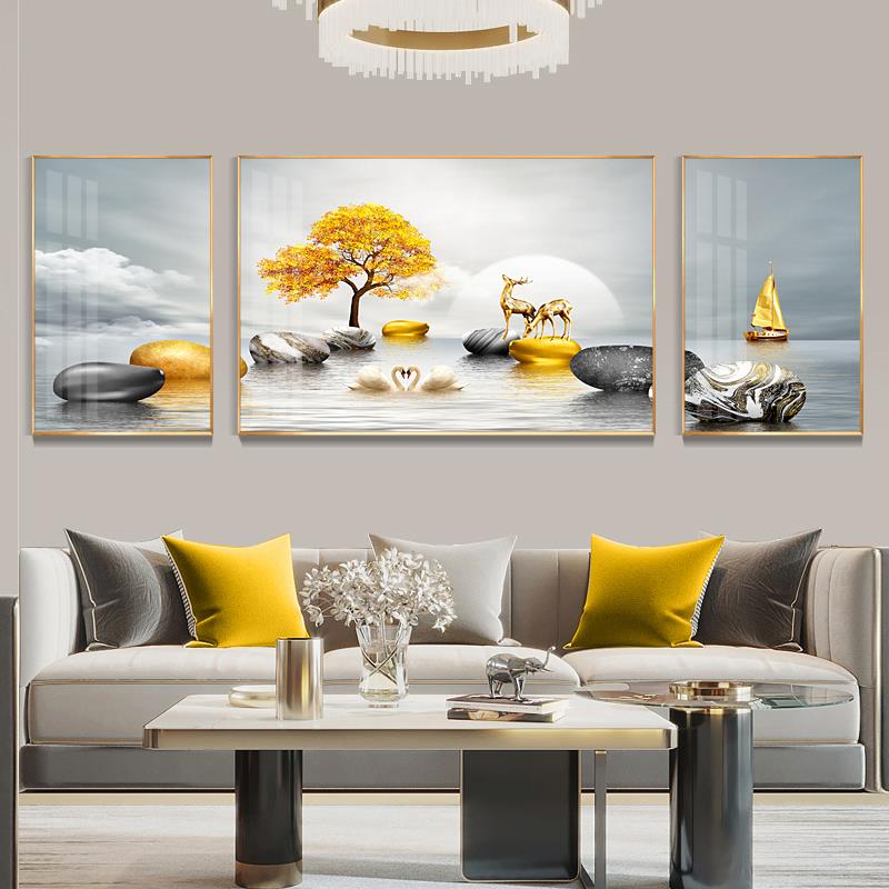 北欧现代客厅沙发背景墙装饰画卧室山水画挂画餐厅晶瓷镶钻三联画热门设计联盟服务商
