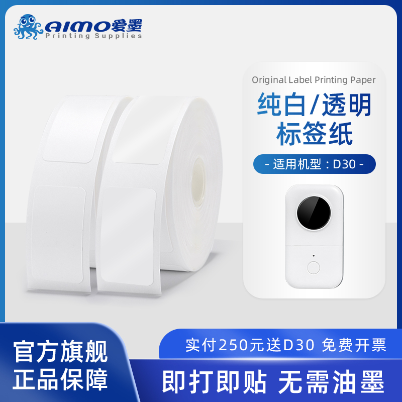 爱墨雅柯莱D30标签打印机彩色不干胶热敏标签打印纸超市商品打价格签纸自粘标签纸家用收纳手账标签姓名贴纸热门设计联盟服务商