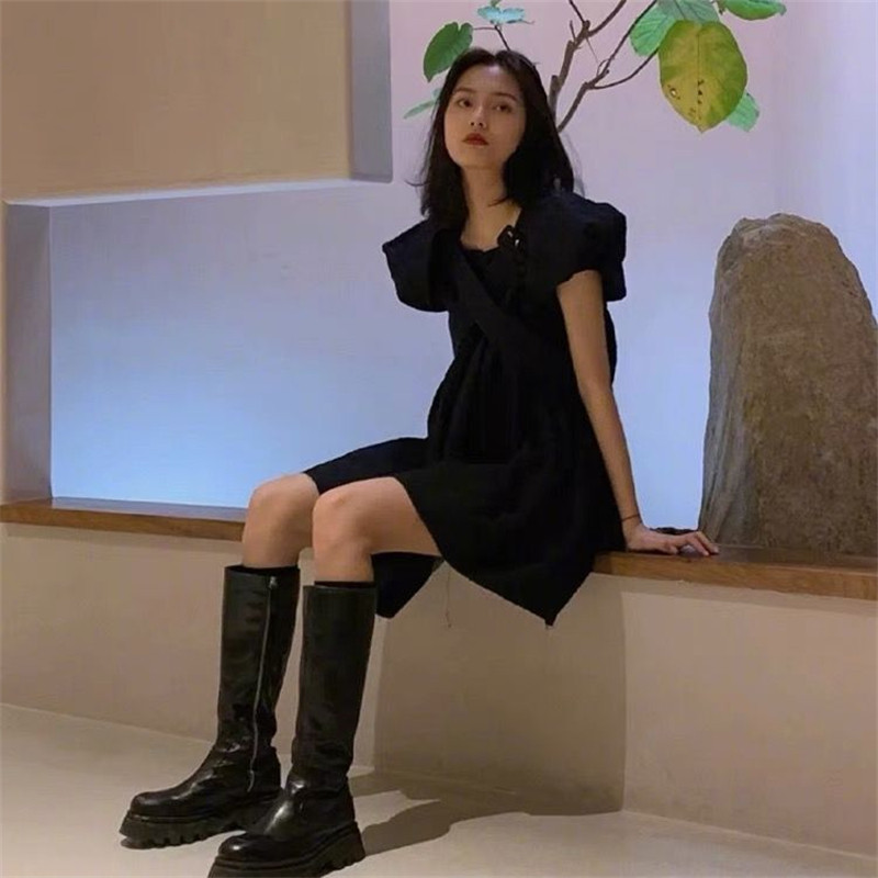 香港潮牌赵佳丽吉野同款法式泡泡袖连衣裙夏设计宽松显瘦娃娃短裙热门设计联盟服务商