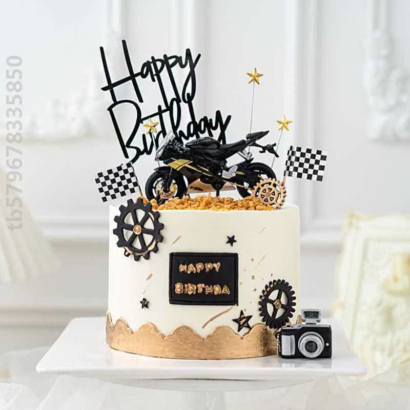 酷炫摩托车蛋糕装饰网红机车烘焙模型男神生日亚克力插件派对装扮热门设计联盟服务商